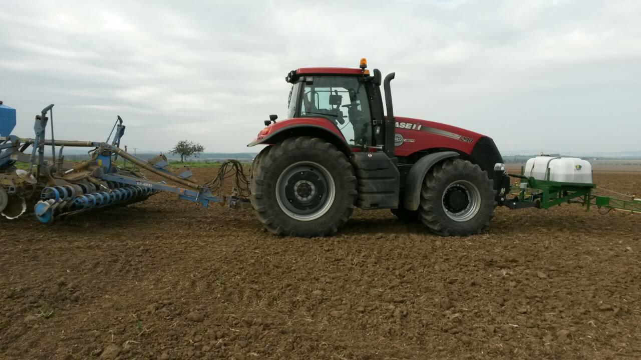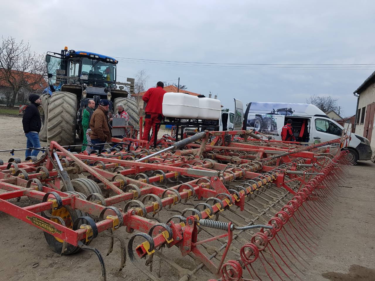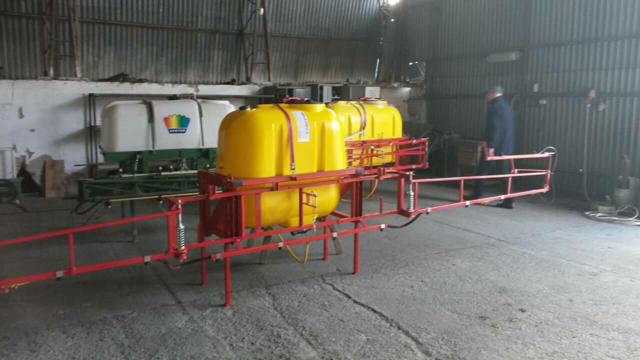 - Möglich ist auch eine Ausbringung mithilfe von Applikatoren mit einem Tankvolumen von 400 l und 600 l, mit regelbaren Arbeitsbreiten bis 10 m, im Frontanbau an der Dreipunkt-Aufnahme des Schleppers (vorderer Kardan-Abgang wird nicht benötigt, da der Applikator mit einer eigenen Steuerung und mit einem eigenen Elektromotor, der an die Schlepper-Batterie angeschlossen wird, ausgestattet ist). Der Applikator-Tank wird mit AZOTER-Konzentrat befüllt, eine Verdünnung mit Wasser im Verhältnis von 1:1 ist ebenfalls möglich.